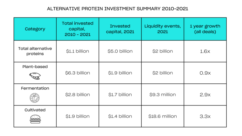 Below is a snapshot of some of the largest alternative protein investments in 2021 and 2022:
