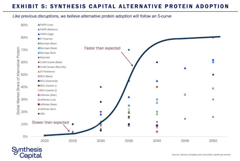 - Regulatory: Governments around the world are updating their food frameworks to adapt to the new wave of technologies coming to the market. Cultured and molecular farming are two technologies where we are skeptical about the pace of regulatory change.