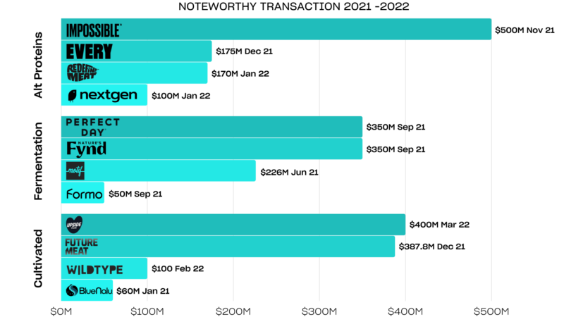 Below is a snapshot of some of the largest alternative protein investments in 2021 and 2022: